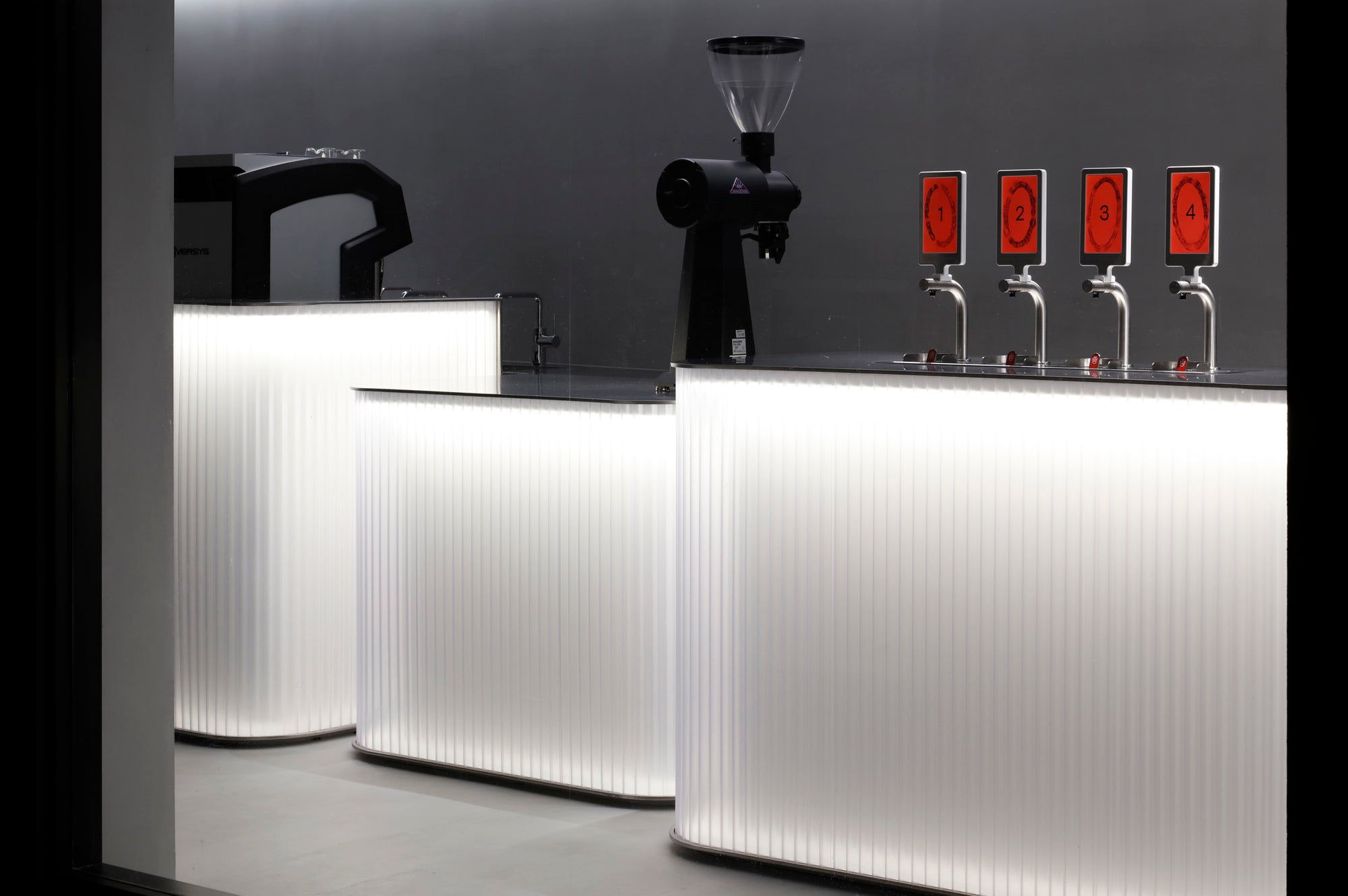 タップマシーンで注ぐ5種類のドリップコーヒー、ラテおよびエスプレッソ、その他コーヒー豆からできたカスカラコーヒーチェリーティー、焼き菓子など、さまざまなメニューを提供いたします。